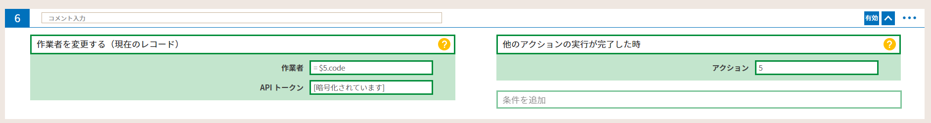 3.ボタンを押したときに作業者を変更するアクションを実行する設定を追加します