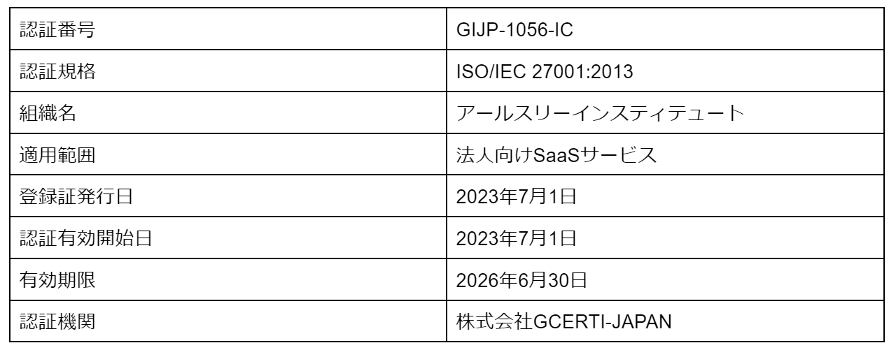 アールスリーインスティテュート(本社:大阪市、代表取締役:西松 顯)は、情報セキュリティマネジメントシステム(ISMS)の国際規格「ISO/IEC 27001:2013」を取得しましたのでお知らせいたします。