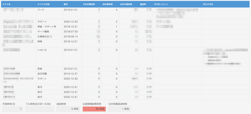 日報もどこの会社でもある仕組みですね、以前はこれも社内掲示板に、その日どのプロジェクトにどれくらい時間を使ったかをテキストとして記録していました。