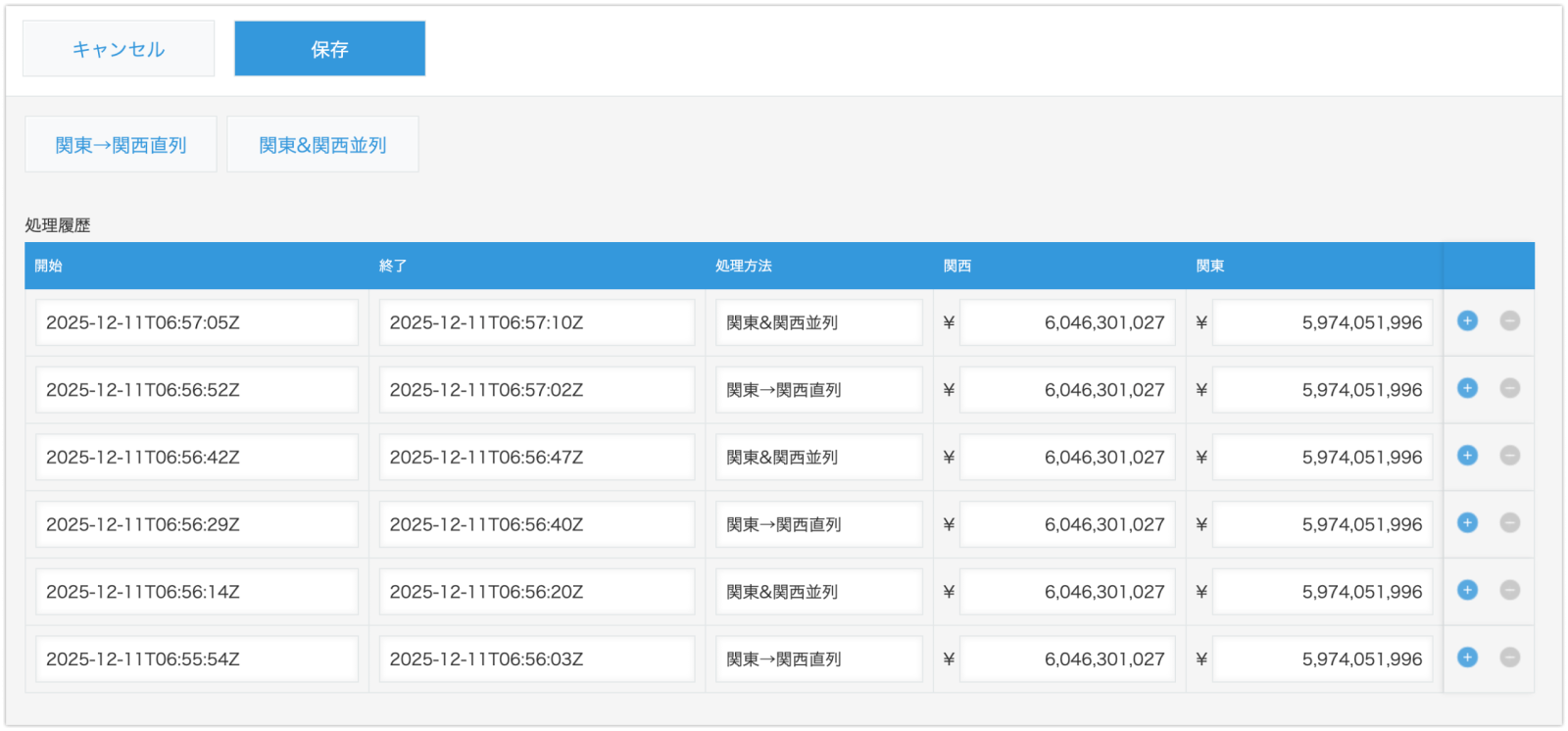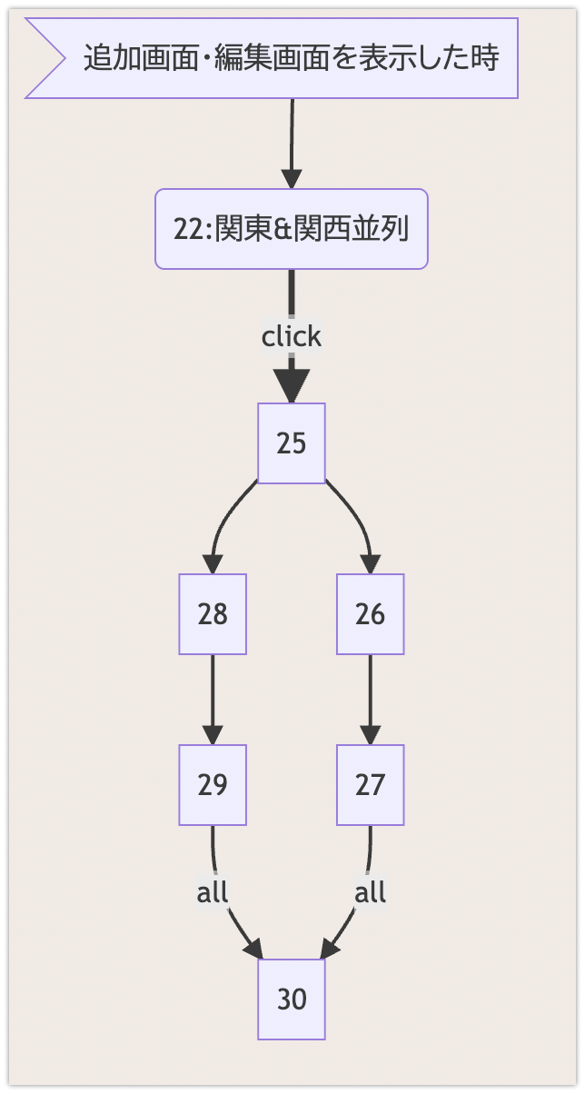 やる処理としては関東、関西のデータをそれぞれ取ってきて合計値を出すという処理になります。