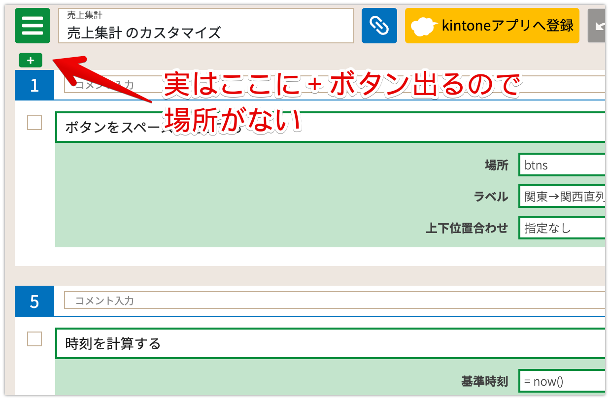 というのも、ちょっと難しい話なのですが、kintoneのカスタマイズでいうと、カスタマインでのカスタマイズはイベントドリブンな処理の仕方をしていまして、「他のアクションの実行が完了したとき」でつないでいると一連の処理の流れのように見えていますが、実際は「アクションを実行する」「アクションが終わったというイベントが発生する」「繋がっている次のアクションを実行する」という流れになっています。