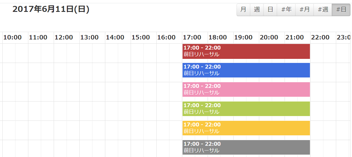 カレンダー画面に以下のような凡例を表示することもできますが、メンバーカラーは誰でもわかるので凡例表示は表示しない設定としました。