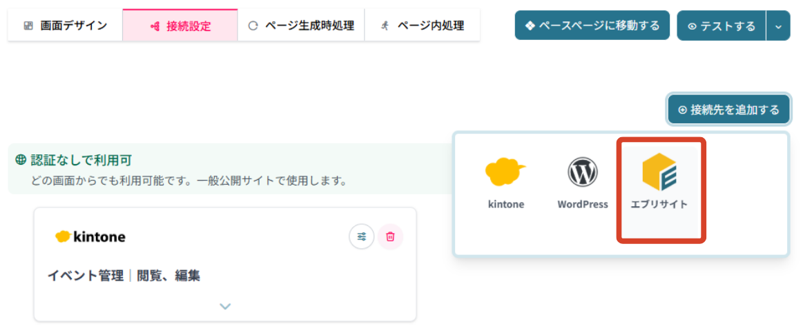 ページ内処理で、フォームの情報からkintoneにレコードを追加するよう設定を行います。
