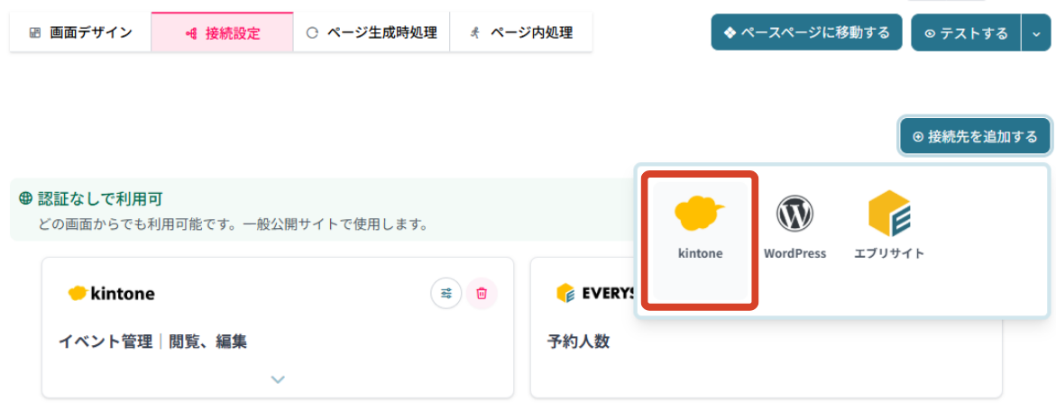 イベント申し込みサイトは、エブリサイトで作成する4つのページと、2つのkintoneアプリで構成をしていきます。