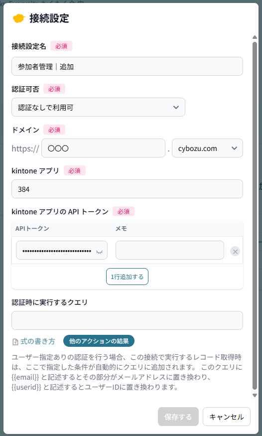 (私がブログを更新していない間に、1つのkintoneの接続設定で複数APIトークンを追加できるようになりました!ルックアップのフィールドに値をセットするときなどに有用です✨)