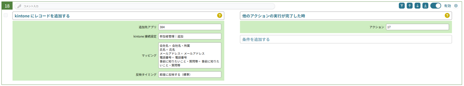 これで、現在の予約人数が定員を下回っている場合にだけ、予約人数を+1して参加者管理アプリにフォームの情報を用いてレコードを追加する準備が整いました。