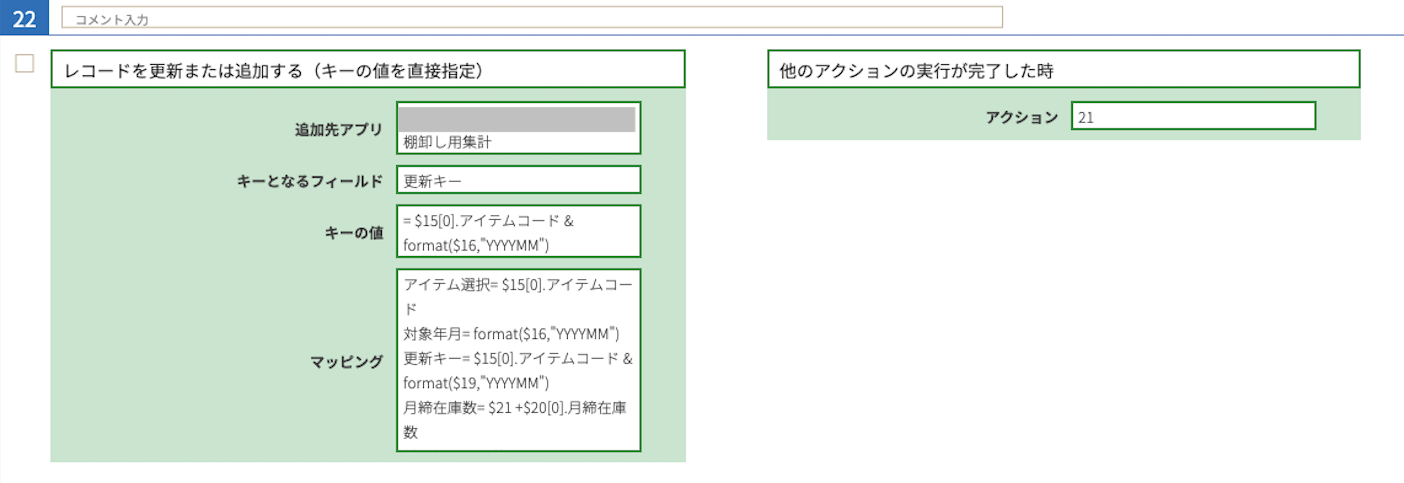 レコードを更新または追加する(キーの値を直接指定)」を使うと1アクションで更新か追加を判定してどっちかをやってくれる素敵処理ができあがります❤️