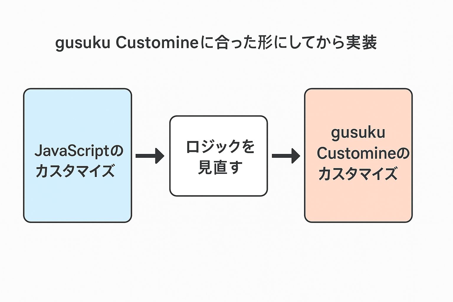 そのため、JavaScript で作られた処理を、構造やロジックまで含めて完全に同じように作ろうとすると、カスタマインの特性を活かせず、逆に複雑で保守しにくいカスタマイズになってしまうケースが多いのです。