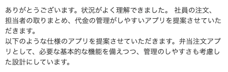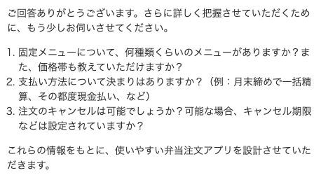一発で最高の結果を得るのではなく、相談しながら進めていくと良いです。 これは実際に試してみての感想なのですが、一発で理想の形のアプリを作れる(というか完成系を想像できる)人なら、アプリ作成AIを使わずに自分で作った方が早いし確実だし細かい部分も調整できます。