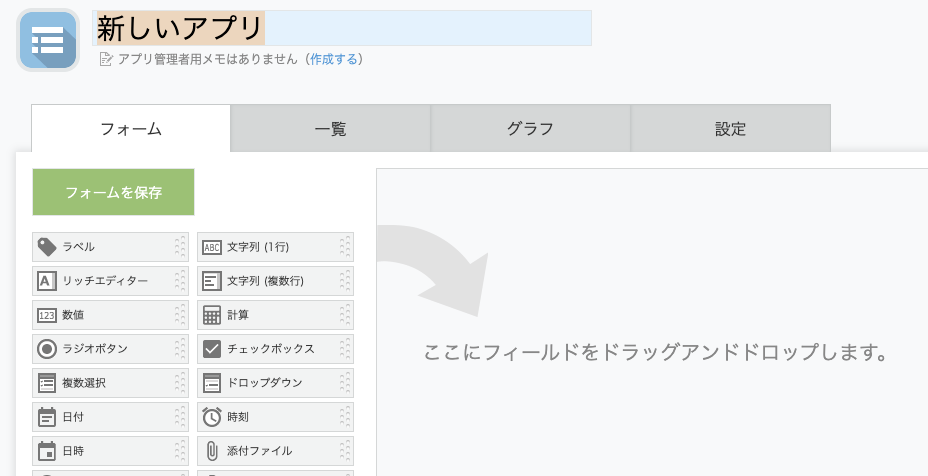 アプリを作成するのが初めての方が何に戸惑うか?と考えたんですが、 まず、どのフィールドを使えばいいのかがわからないところかなと思いました。