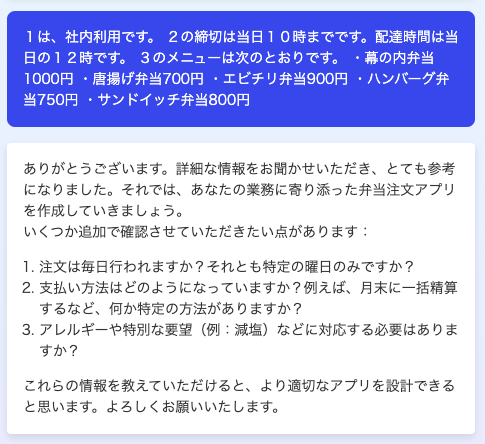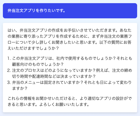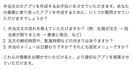 ということなので、よくわかってない体を装ってアプリ作成AIに聞いてみます。
