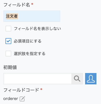 すると、ちゃんと注文者のところに初期値ログインユーザーが指定された状態となりました。
