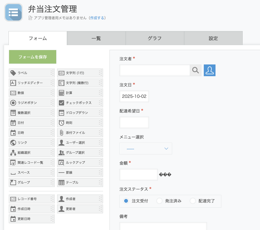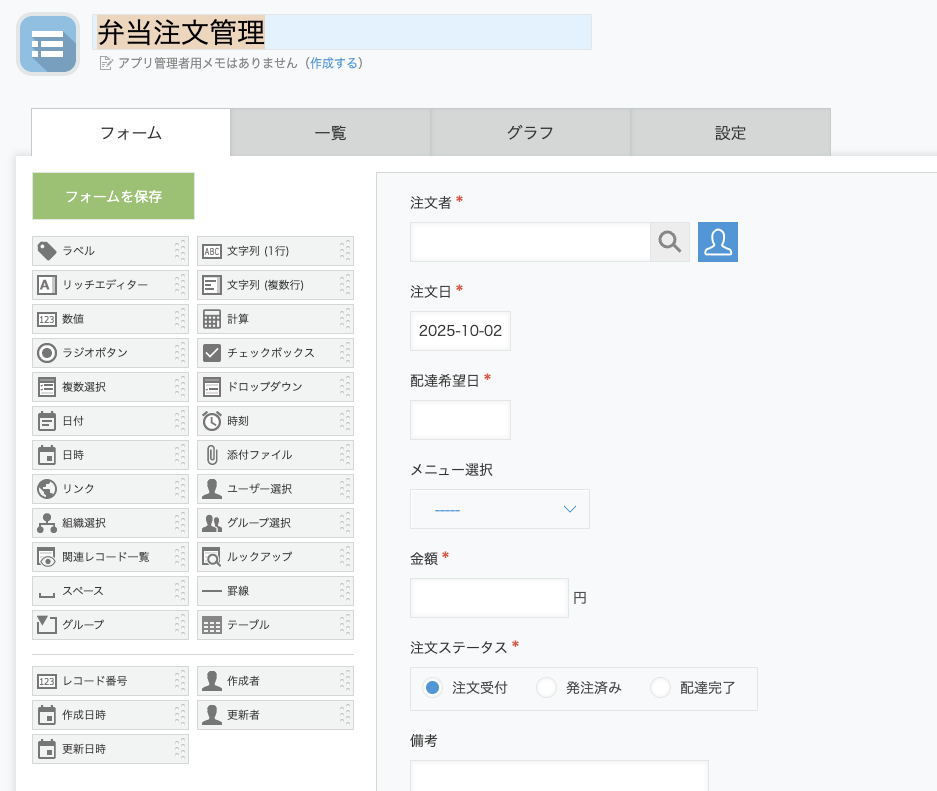 - 弁当メニューはマスタ化を考えている(ルックアップ)