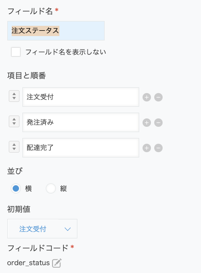 いくつか貼り付けました。 初期状態の「文字列__1行_」みたいなフィールドコードではなかったものの、「フィールド名」=「フィールドコード」ではなく、フィールド名を英語に直したものが設定されているようですね…ここは「フィールド名」=「フィールドコード」で良かったのになぁという個人的感想です。