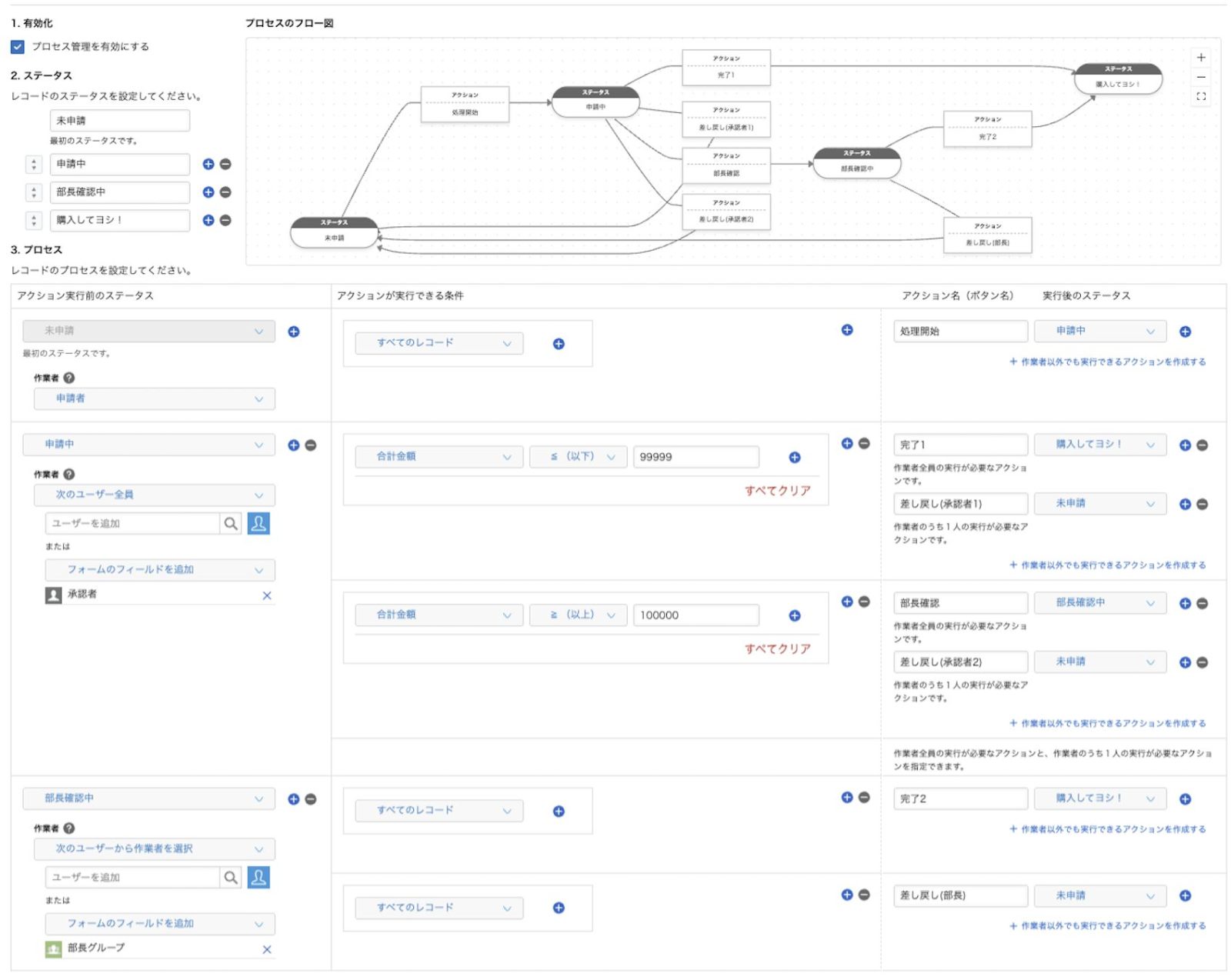 ・kintone AIラボのプロセス管理設定AIに考えてもらったプロセス管理