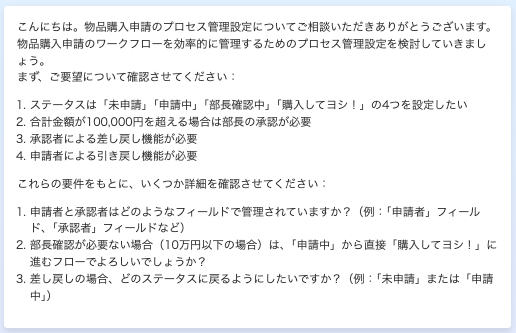 上記のお題をそのまま「プロセス管理設定AI」に渡してみます