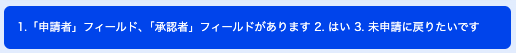 「申請中」ステータスの「作業者」は「承認者」フィールドのユーザーのはずだよね