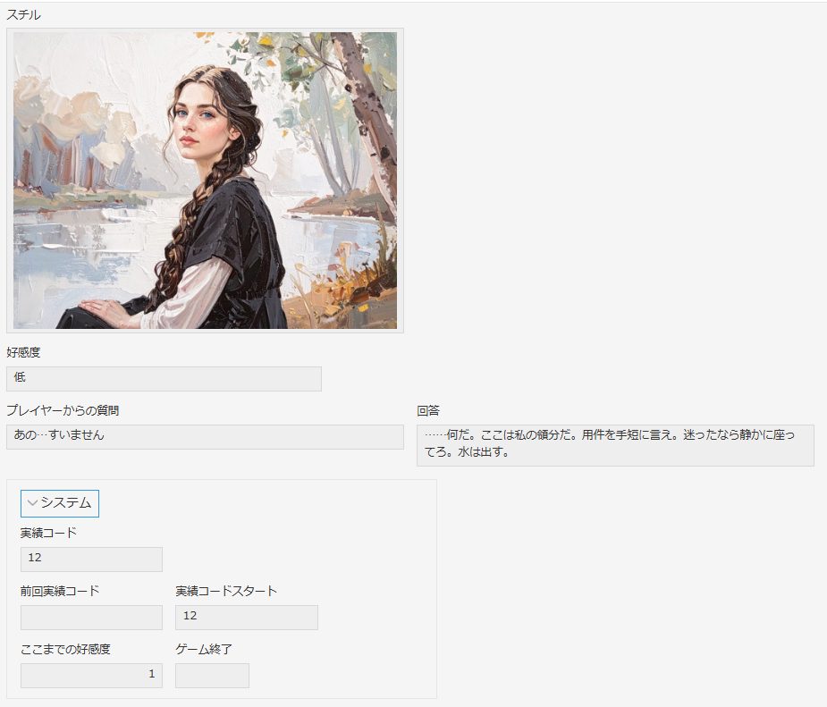 - 「これまでの好感度」が0、悪い声かけの場合のみ返る