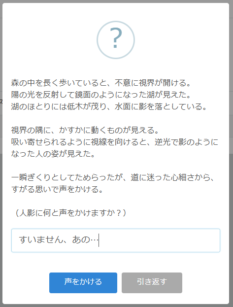 会話を繰り返し、「最高」の好感度の回答があれば『友達になった』としてハッピーエンド、「最低」の好感度の回答があればバッドエンドになります。