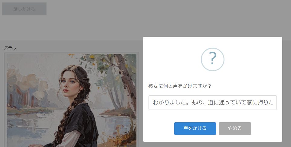 続きの会話は、詳細画面の「話しかける」ボタンから進めます。