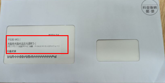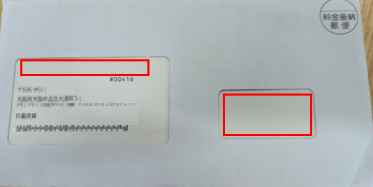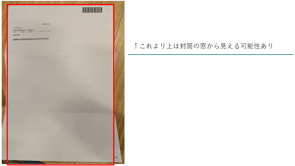 3.封筒の窓部分のうち下の赤枠のエリアは1ページ目の書類の内容が表示されます