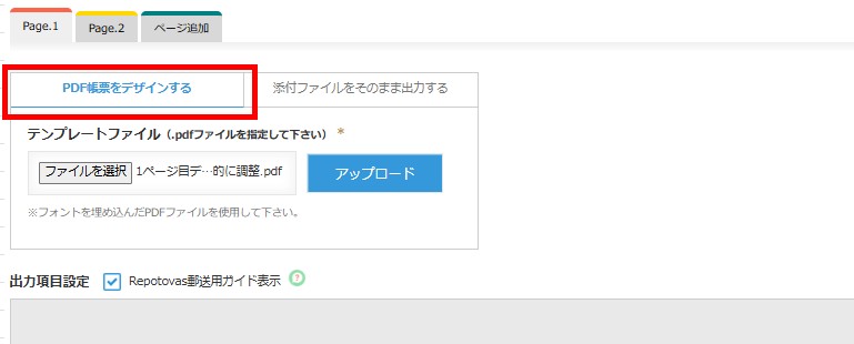 郵送の場合「PDF帳票をデザインする」を選択して、