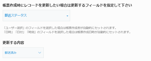 郵送用のボタンを押して郵送手配した時には、レポトン側の更新処理をトリガーにWebhookの発動が可能です。