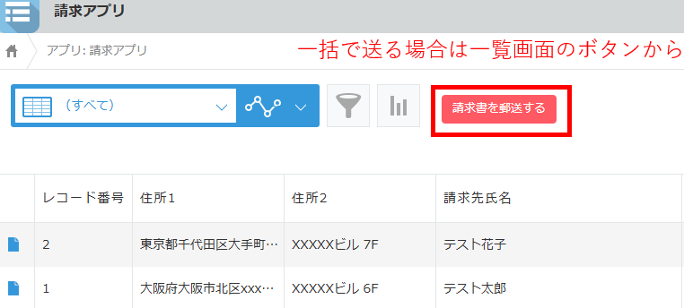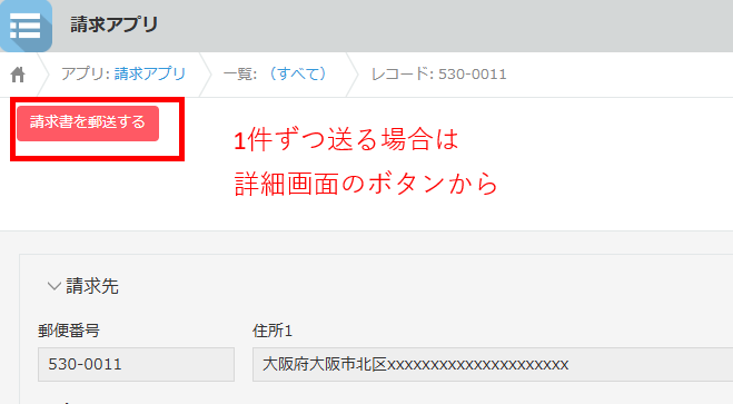 郵送用のボタンを押した時に自動的に紐づけ先の住所に送付される仕組みです。