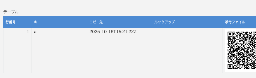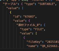 Job Runnerの場合は取得したレコードのデータをベースに更新するので、更新データとしてはidが付いた状態で更新になります。こうするとテーブル行としては保持したままの更新なので添付ファイルもそのままです。