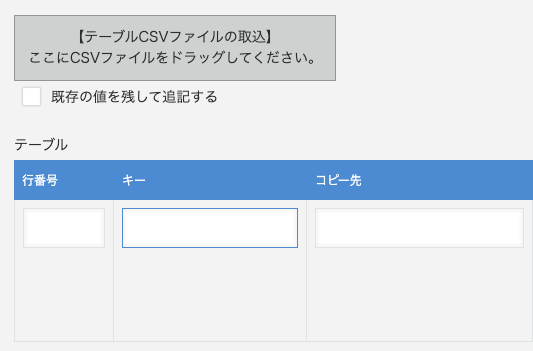 テーブルに追加する元になるレコードがなく、CSVがあるような場合は「テーブルデータをCSVから読み込むための枠を作成する」でテーブルに直接追加が可能です。