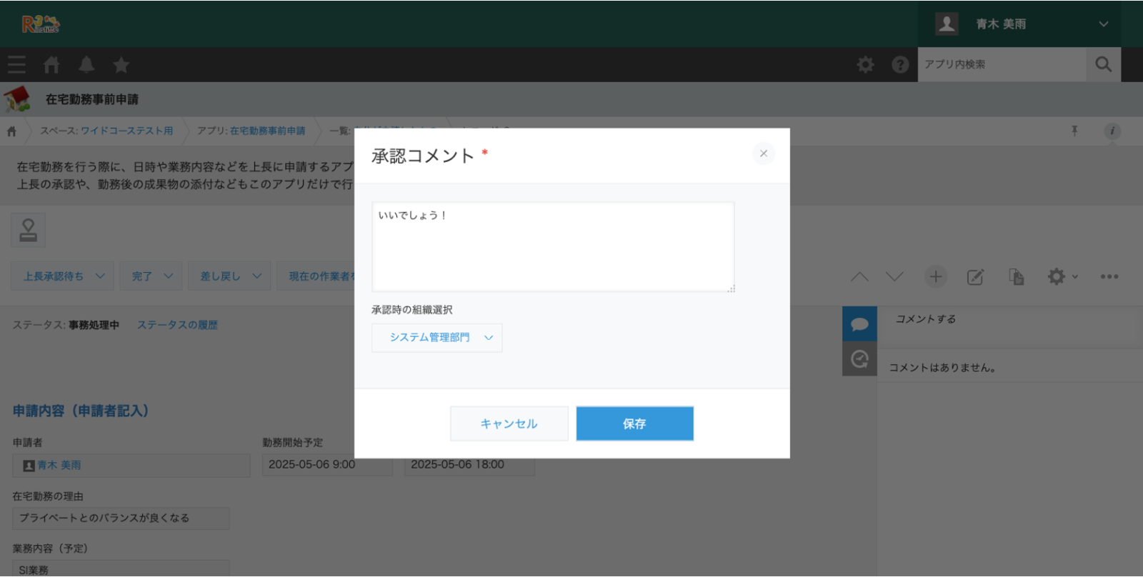 ✅プロセス管理強化:コメント入力&承認履歴の自動記録