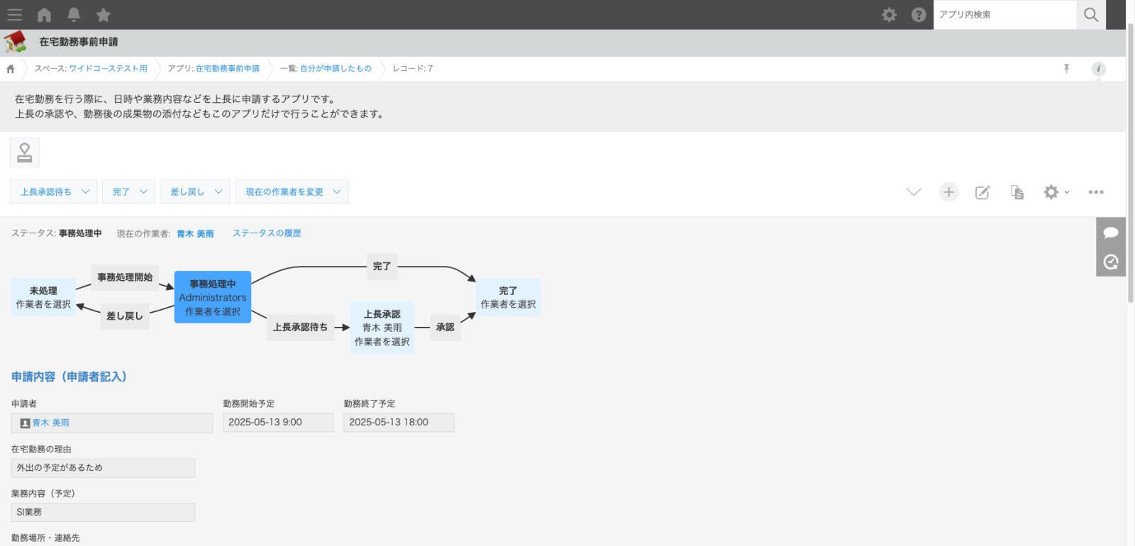 - 現在のステータスや承認段階を一覧 or 詳細画面上で図として確認できる