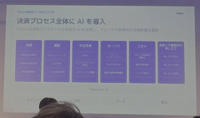 Stripeでは決済プロセス全体でAIを導入しているそうです。イメージとしては不正利用のチェックに機械学習だったのが生成AIに置き換わるという感じだったのですが、既に色々な場面で利用されているようです。