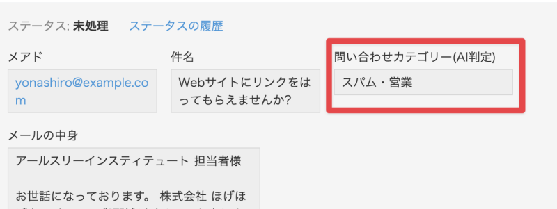 もちろん誤判定の可能性もあり、営業と判定されていてもシステム開発の問い合わせの可能性などもあるので、そのあたりは定期的に kintone を見にいってみる。みたいなことをする必要はあるかと思います。