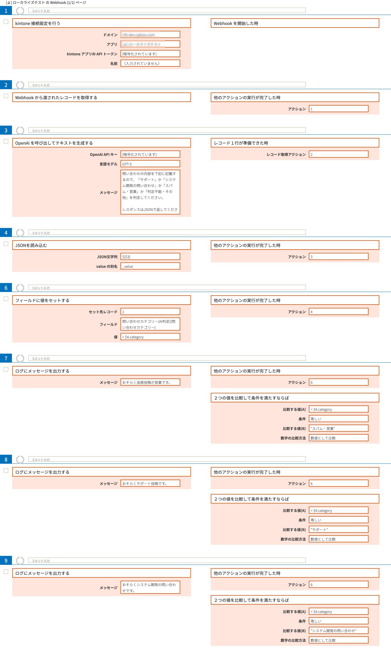 そんな時に、kintone に入った内容をAIにチェックさせて、これはシステム開発の問い合わせなのか、営業なのか、はたまたサポートの問い合わせなのかを判定してもらって、必要なところに通知する。というのを Job Runner でパパっと作ってしまえ〜というのが今回の内容です。