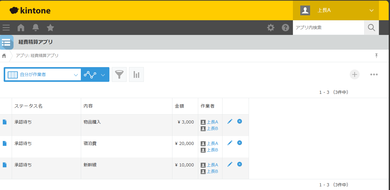 また、一覧を用意すれば、自分が作業者になっているレコードだけを表示することもできます。