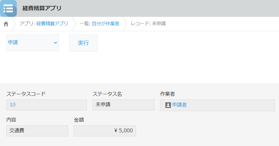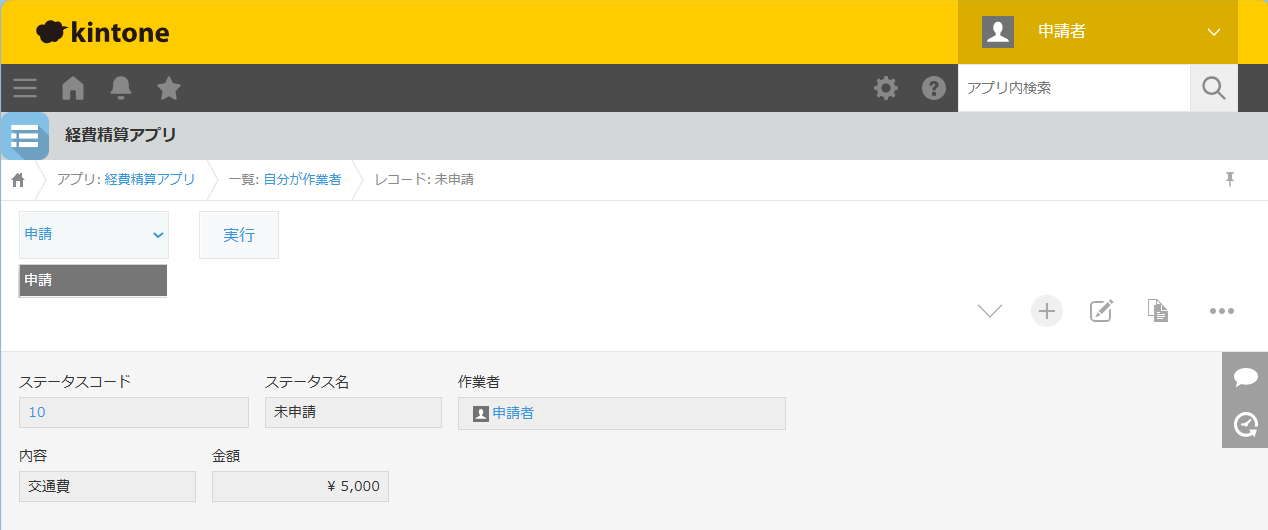 さらに、申請者の画面には、ドロップダウンと実行ボタンが表示されなくなりました。