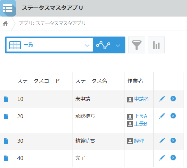 ステータスの追加/変更/削除が簡単です。kintoneアプリやgusuku Customineの設定変更は一切不要です。 - ステータス名とは別にステータスコードを持つことができる