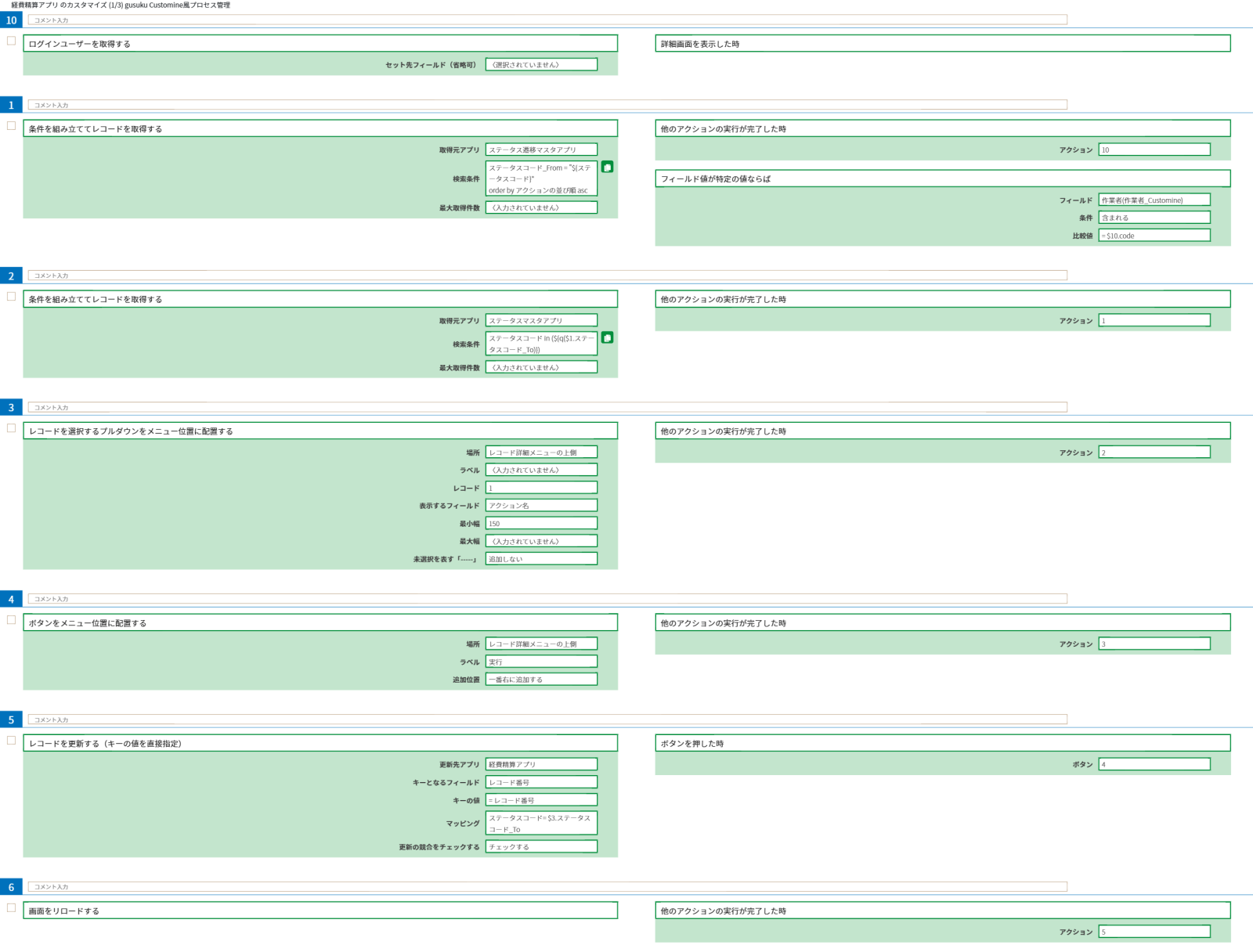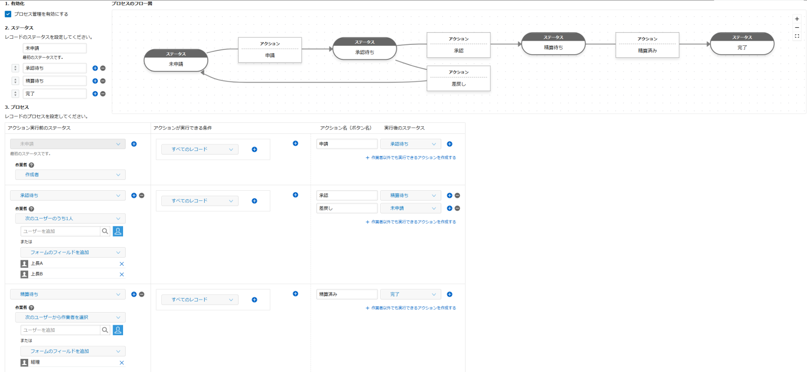 無事、kintone基本機能のプロセス管理のようなものをgusuku Customineを使って作ることができました。