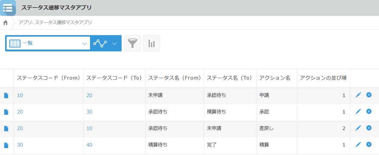 - ステータスの遷移ルール(どのステータスからどのステータスへ移動できるか)