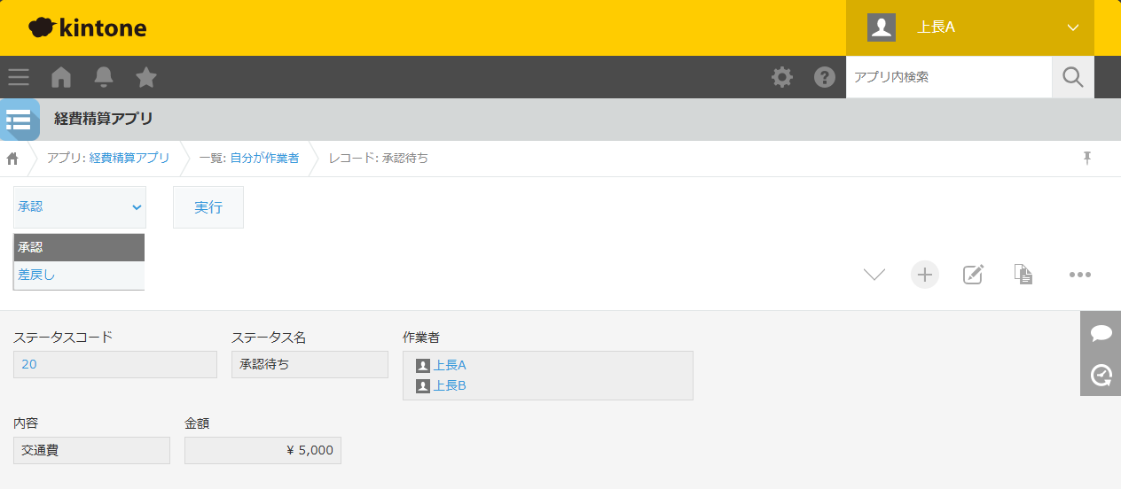 上長Aは、承認がまだ終わっていないと思い、「承認」アクションを実行しました。