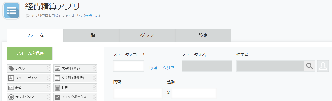 まずは、gusuku Customineを使わずに、kintoneだけ使用した場合のイメージを作ってみました。