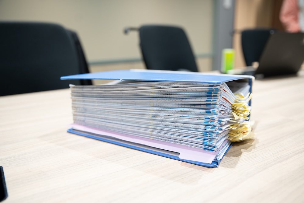 1ヶ月分の申込書の控えをとじているファイル。お客様からの問合せ内容を付箋やExcelの切り抜きを貼り付けることで記録していた