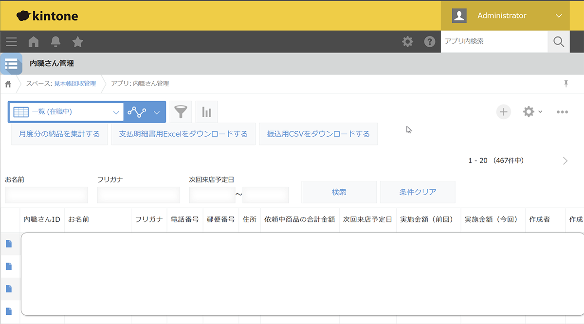 手作業パートナーへの支払いはkintone導入時に現金から銀行振込に変更いただくように依頼し、7割の支払いが銀行振込になりました。以前は約100人分の現金を5時間かけて封筒につめていましたが、今ではこの作業は1時間以下で終わります。