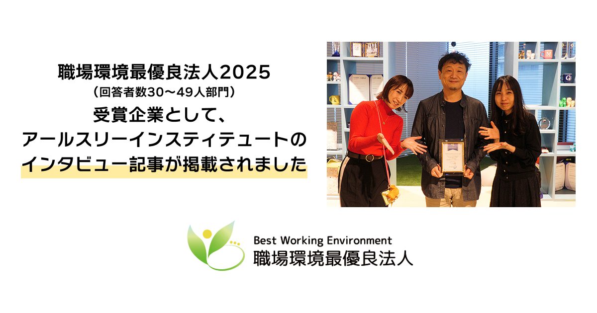 アールスリーインスティテュート(本社:大阪府大阪市、代表取締役:西松顯、以下「当社」)は、先日発表されました株式会社ドクタートラスト選出の「職場環境最優良法人2025(回答者数30~49人部門)」を受賞いたしました。これに伴い、同社の特設サイトにて当社のインタビュー記事が掲載されましたのでお知らせいたします。